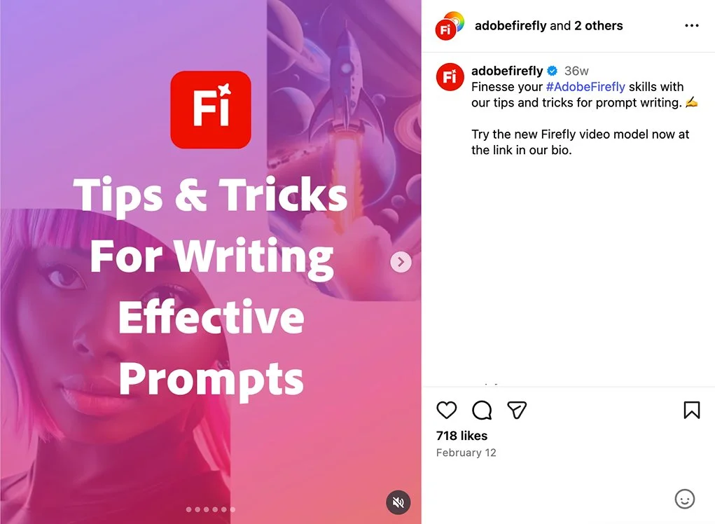 At Adobe, I helped shape how Firefly showed up across channels, writing social copy that struck the right balance between educational and engaging. From AI prompt-writing tips to full-fledged feature launches, each post invited creators to explore what’s possible when imagination meets technology.